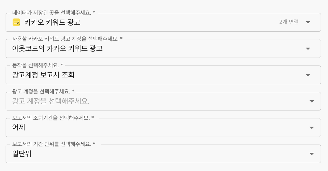 보고서를 조회할 광고계정 선택