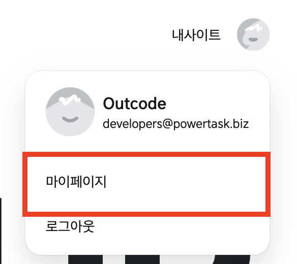 마이페이지 우측 상단의 내 사이트 버튼을 누릅니다.