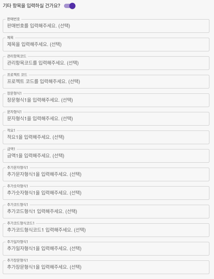 ### 기타 항목 입력(선택)&#x20;