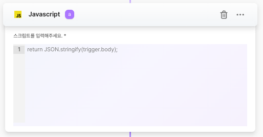 <table><thead><tr><th width="137" align="center">항목명</th><th width="292" align="center">항목소개</th><th align="center">비고</th></tr></thead><tbody><tr><td align="center">스크립트</td><td align="center">JavaScript 코드 </td><td align="center">return 문으로 다음 태스크에 데이터를 전달합니다.<br>데이터의 형식은 제한이 없습니다.</td></tr></tbody></table>