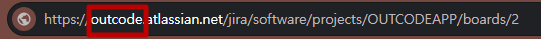 * 예시) 지라 워크스페이스 URL이 <https://outcode.atlassian.net/jira/...인경우>, URL에서 \